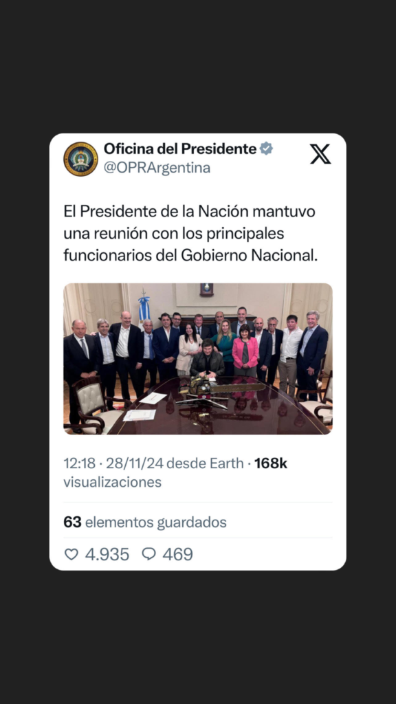 Javier Milei reunió a su gabinete sin Victoria Villarruel y reafirmó su plan de reformas profundas Politica - elotrocostado.com - 28 noviembre, 2024