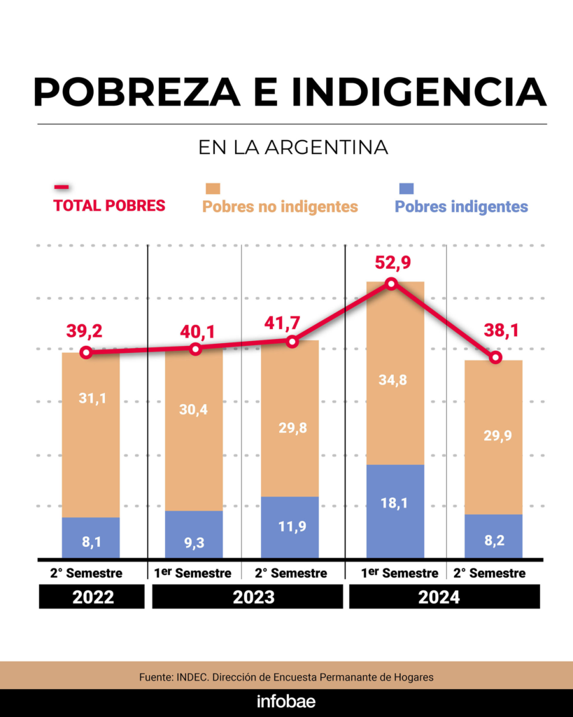 La pobreza bajó del 52,9 al 38,1% en el segundo semestre de 2024 según datos del INDEC Economía - elotrocostado.com - 31 marzo, 2025
