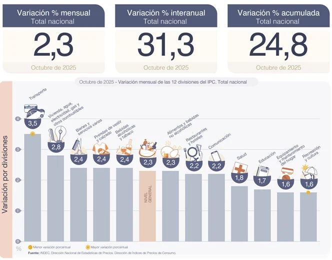 La inflación de octubre fue del 2,3% y acumula un 24,8% los primeros diez meses de 2025, según el INDEC Economía - elotrocostado.com - 12 noviembre, 2025