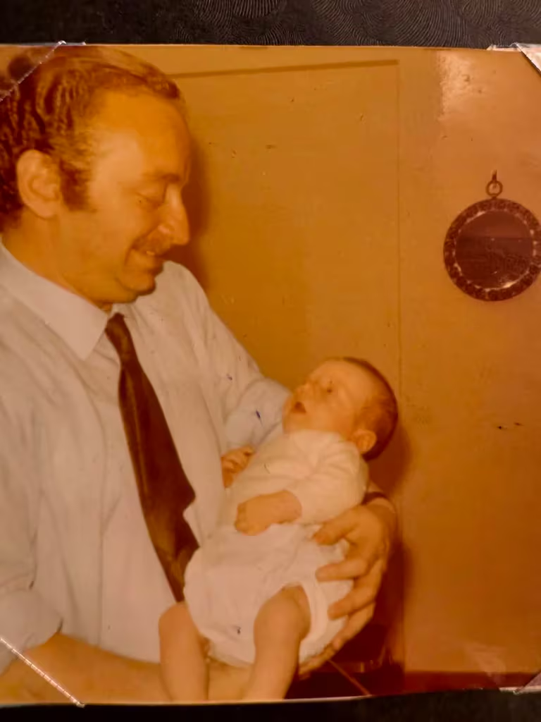 Una dulce foto que compartió Andy Kusnetzoff de su padre, Juan Carlos, cuando el conductor era un bebé (Foto: Instagram)