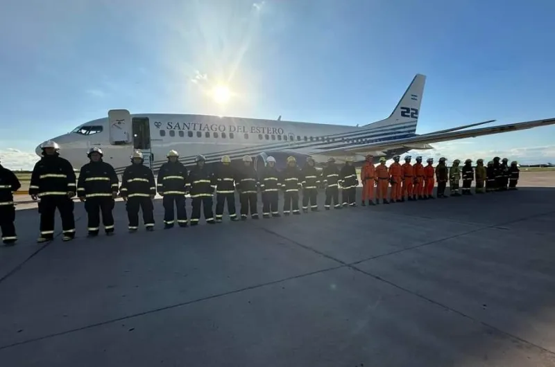 El jefe de Gabinete de la provincia, Víctor Araujo; el secretario Legal y Técnica de la Gobernación, Joaquín de Arzuaga y el equipo de Aviación de la provincia recibieron al director de Aviación Civil de Santiago del Estero, Jorge Azar, y al piloto Emanuel Zain Boix, quienes fueron parte de esta importante misión en la Patagonia. La misma fue realizada ante la solicitud del Gobierno Nacional, dada la magnitud del siniestro y la necesidad de contar con la capacidad plena del avión hidrante más grande de Latinoamérica.