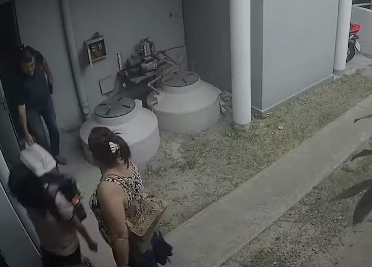 Las cámaras de seguridad también captaron el momento en que los tres se retiraron en la mañana del sábado 15 con el mismo equipaje con el que llegaron.
