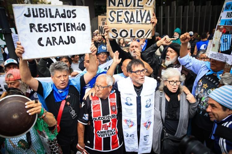 La movilización comenzó cerca de las 15 y la tensión aumentó cuando la columna de manifestantes cortó la Avenida Callao y la Prefectura avanzó a pie y con escudos para desalojar la calle. Gas lacrimógeno, empujones y forcejeos entre los jubilados y los efectivos policiales.