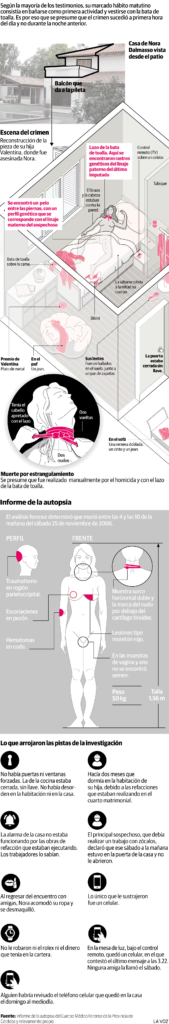 Jávega dijo que Bárzola estuvo trabajando en la casa de la víctima una semana antes del homicidio. Según el fiscal, “se ha verificado una compatibilidad genética tanto en las huellas encontradas en el cinto de bata de la víctima como en un pelo hallado en la escena del crimen”.