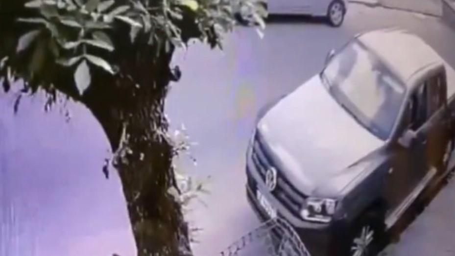 Cuando bajaban objetos de una camioneta Volkswagen Amarok negra aparecieron dos sujetos que los abordaron con intenciones de robo.