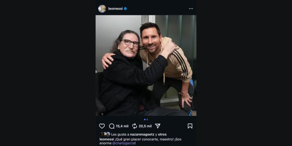 Tras la victoria de la Selección Argentina, Lionel Messi protagonizó un encuentro inesperado con Charly García, leyenda indiscutida del rock nacional. El cruce entre dos íconos de la cultura argentina quedó inmortalizado en una foto que rápidamente comenzó a circular, despertando la emoción de los fanáticos tanto del fútbol como de la música.