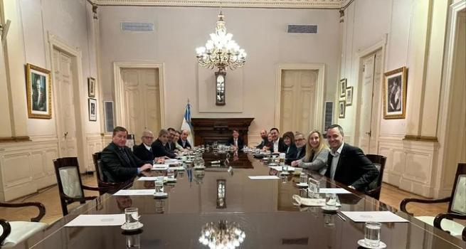 En el marco de la medida de fuerza, el jefe de Gabinete, Nicolás Posse y la secretaria general de la Presidencia, Karina Milei, encabezaron el encuentro sin la presencia del Jefe de Estado, quien demoró su llegada a Casa de Gobierno por “otras reuniones de agenda”.