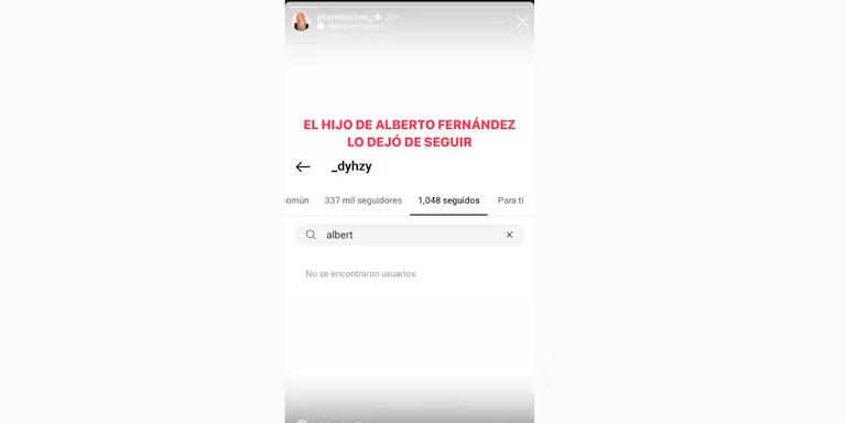 Por otro lado, en las redes sociales notaron algo en las cuentas del hijo del exmandatario, Estanislao Fernández, que generó revuelo. Mejor conocido cómo @_DYHZY, Estanislao lo dejó de seguir a su padre en Instagram.