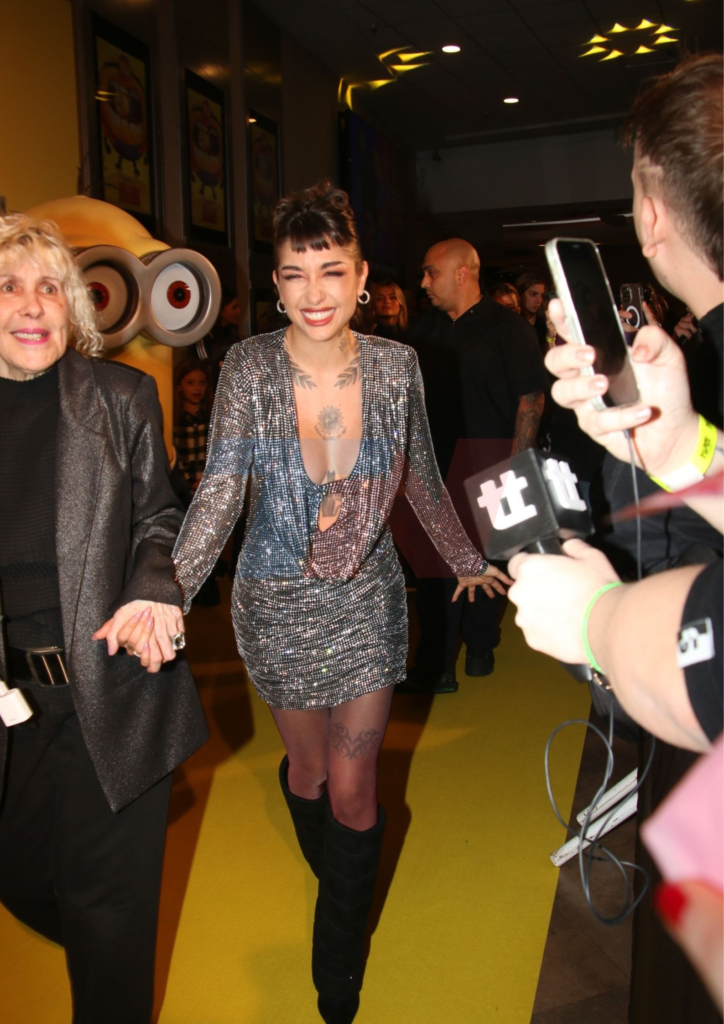 Durante la avant premiere de este film, la intérprete de “Imán” fue una de las invitadas sorpresa y fue recibida con mucha alegría. Para este evento especial, la cantante llevó un vestuario fiel a su estilo, con mucho brillo y escotado, dejando ver sus tatuajes en la zona del pecho. Se trató de un vestido en color plateado, con strass y mangas largas, ideal para una salida nocturna.