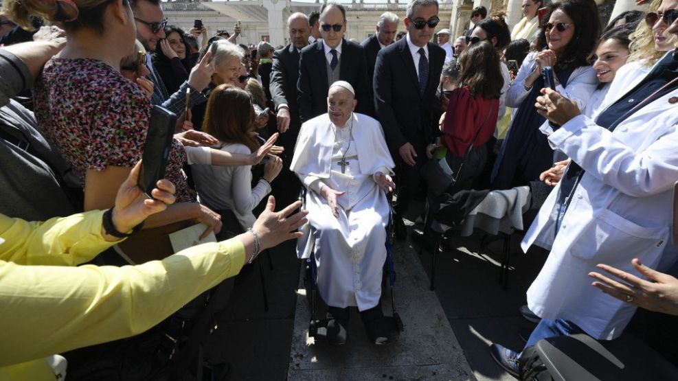 El papa Francisco reapareció en la plaza de San Pedro del Vaticano para saludar y bendecir a los fieles, mientras se recupera de su extensa internación por una doble neumonía.