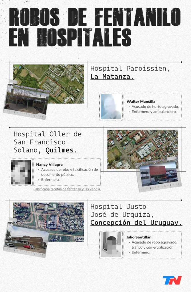El primero sucedió en enero en La Matanza. Walter Hugo Mansilla, el acusado, trabajaba en el Hospital Paroissien, en la localidad de Isidro Casanova. Fue descubierto a través de las cámaras de seguridad, cuando una empleada descubrió que había robado tres ampollas de fentanilo de 10 milímetros cada una.