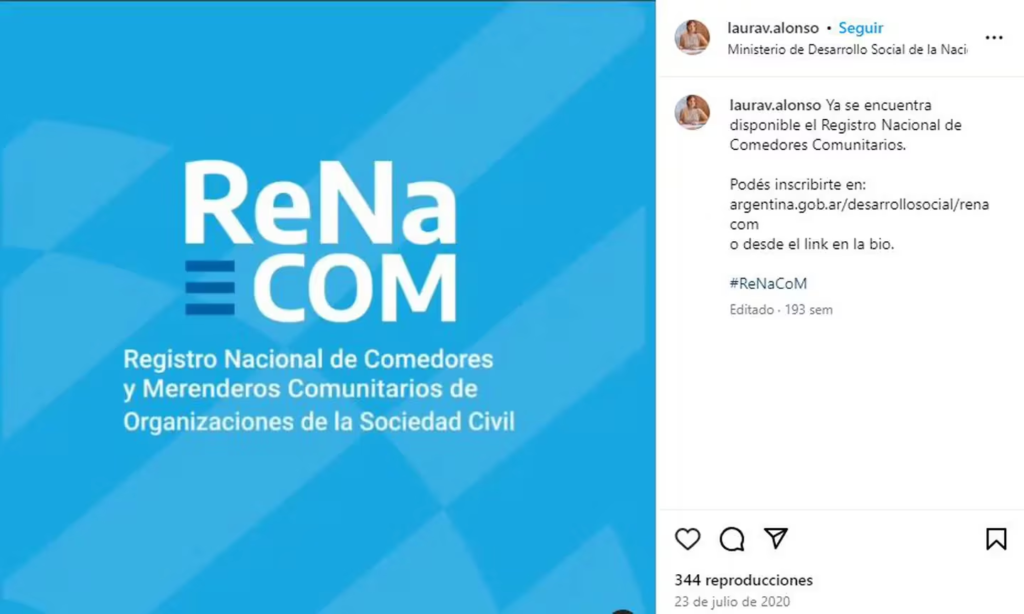 El Renacom se creó con una resolución en 2020, en tiempos de la cuarentena más férrea por la pandemia del Covid. El ministro era Daniel Arroyo, que llegó con el comienzo de la presidencia de Alberto Fernández, pero la funcionaria designada a cargo fue Laura Valeria Alonso, titular de la Secretaría de Inclusión Social y dirigente de la Cámpora.