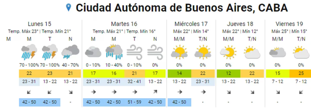 El Servicio Meteorológico Nacional emitió su pronóstico del tiempo para el día de hoy, lunes 15 de abril, y el resto de la semana tanto en la Ciudad de Buenos Aires (CABA) como el conurbano de PBA.