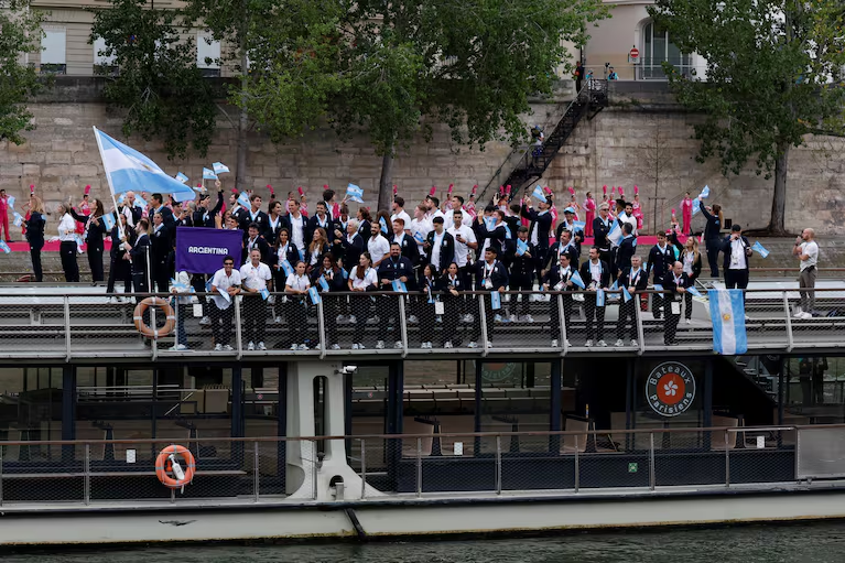 Poco después llegaría el turno de los atletas argentinos, que sin duda se hicieron sentir con sus cantos hasta la zona de Trocadero, donde dejaron la embarcación.