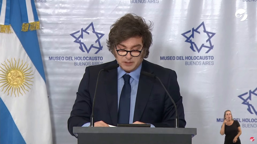 “Ojo con los que de forma banal revolean acusaciones y categorizaciones de nazi a cualquiera que no coincida con su froma de pensar, tal como lo hicieron expresiones de izquierda de todo le mundo contra mi amigo Elon Musk, que es un defesnor intachable del estado de Israel”, manifestó el libertario durante el acto en el Museo del Holocausto, y subrayó: “Estas falsas acusaciones vienen de los mismos que defienden a los terroristas de hamás y despotrican contra el estado de Israel”.