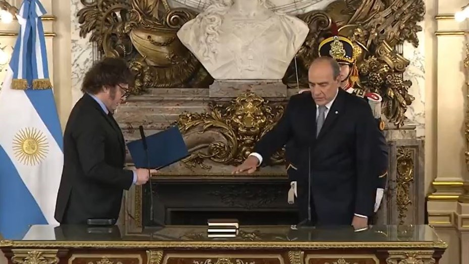 Se trató de una breve ceremonia, a la que la prensa acreditada en Casa Rosada no tuvo acceso, tal como ocurrió cuando Milei le tomó juramento a todos sus ministros el día de su asunción, el 10 de diciembre pasado.