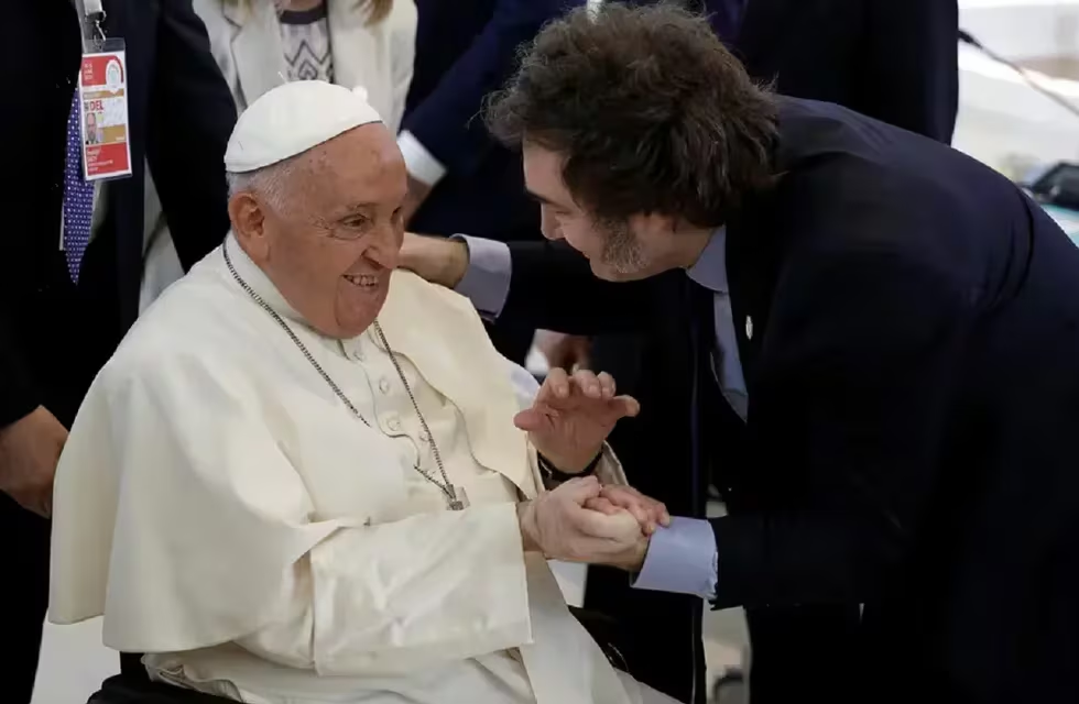 as ser recibido afectuosamente por la primera ministra italiana Giorgia Meloni, el presidente Javier Milei se reencontró este viernes con el papa Francisco en la cumbre de líderes del G7, celebrada en Italia.