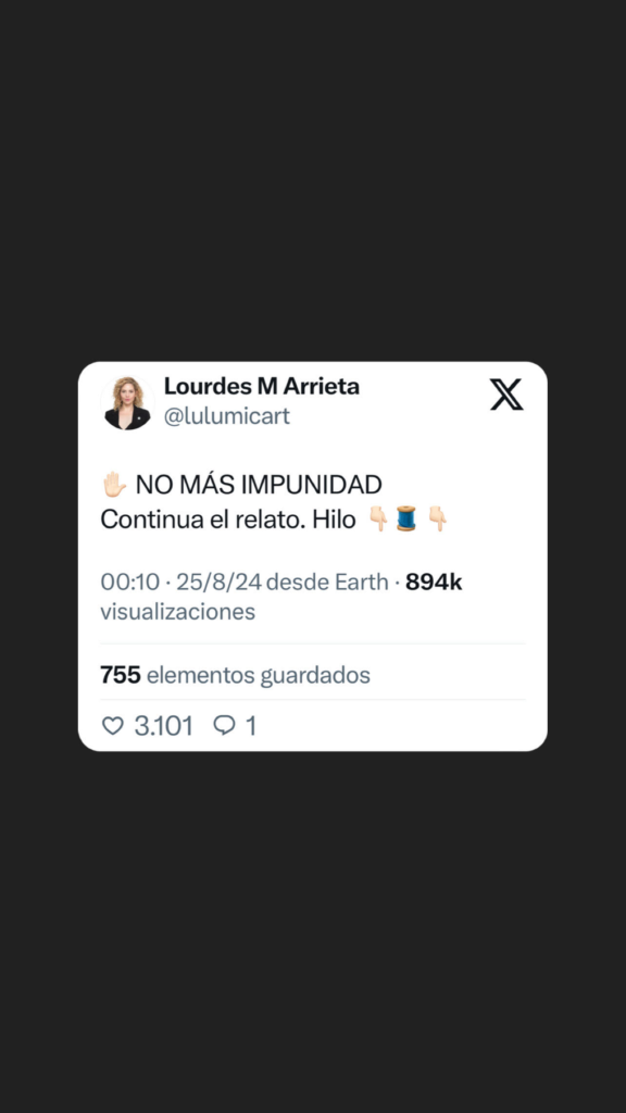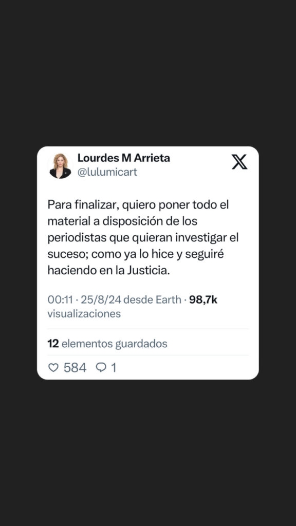 “No más impunidad”, se titula su extenso descargo en redes sociales en el que involucra a varios legisladores y a la ministra de Seguridad, Patricia Bullrich.