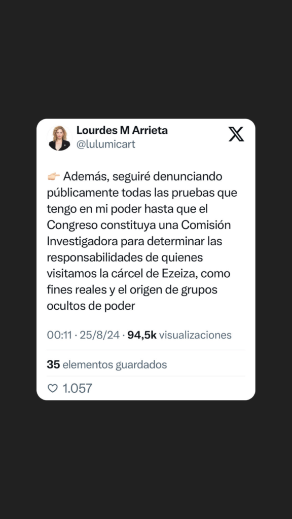 “No más impunidad. Como dijo el presidente Javier Milei es hora de que se sepa la verdad sobre quién autorizó y cuál era el verdadero motivo de la visita a los genocidas. Además de contarles el papel que jugó el padre Ravasi y sus links con diputados, abogados y jueces”, planteó en su cuenta de X.