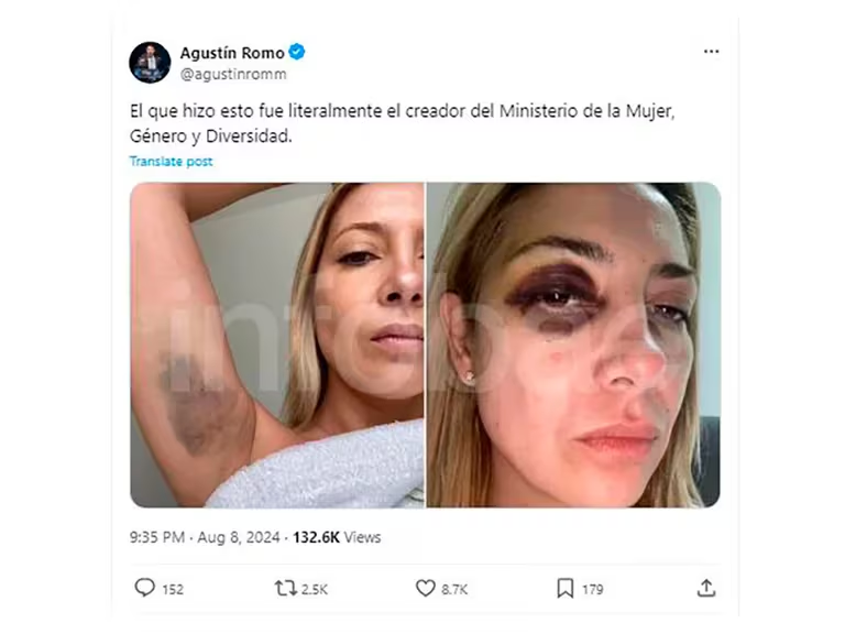 El diputado de La Libertad Avanza en la Legislatura de la provincia de Buenos Aires, Agustín Romo, en tanto, eligió ironía para referirse a las impactantes imágenes. “El que hizo esto fue literalmente el creador del Ministerio de la Mujer, Género y Diversidad”, sostuvo sin nombrar al ex presidente.