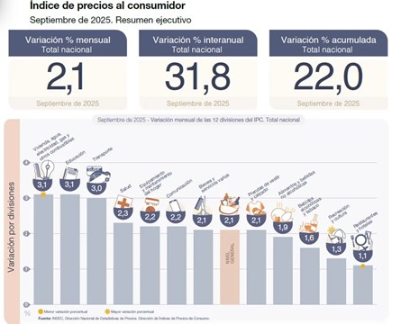 El Instituto Nacional de Estadística y Censos (INDEC) informó este martes que la inflación de septiembre de 2025 fue del 2,1%.