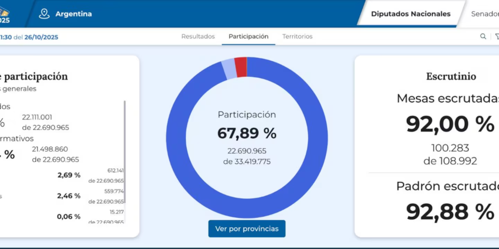 La Dirección Nacional Electoral (DNE) compartió los resultados de las elecciones legislativas nacionales 2025.