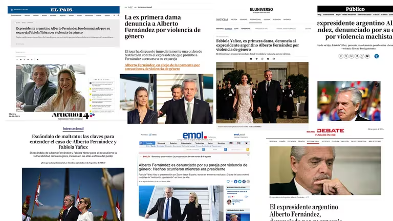 “El expresidente argentino Alberto Fernández, denunciado por su expareja por violencia machista”, fue el titular de Público, de España. Dentro de la nota, se indica que “consultado por EFE sobre la denuncia, el político peronista se limitó a comentar que ‘es un momento muy ingrato’ y que, por el momento, no hará declaraciones en los medios”. En el país ibérico, El Debate se pronunció de una manera muy similar.