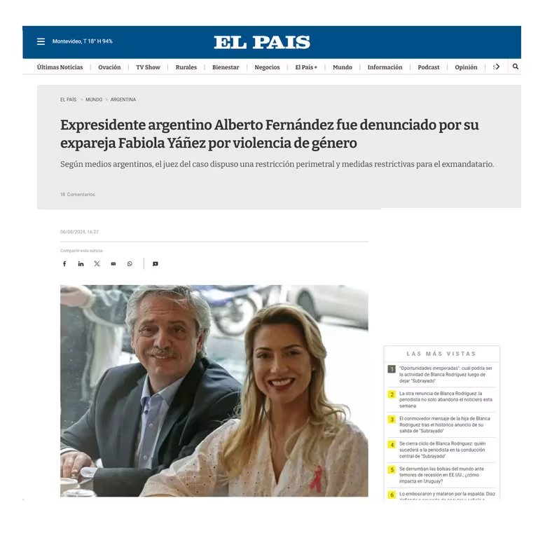 Así reflejó El País la denuncia por violencia de género contra Alberto Fernández