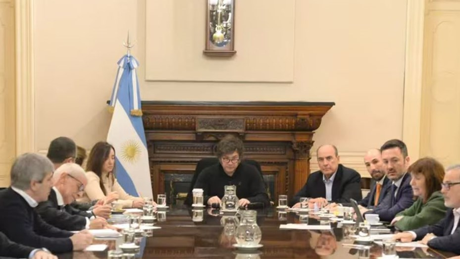 El presidente Javier Milei encabezó Ayer una nueva reunión con sus ministros, secretarios y principales colaboradores en el inicio de la segunda etapa de la gestión y en medio de especulaciones sobre la economía, tras la reacción adversa de los mercados luego de los últimos anuncios del en el área.