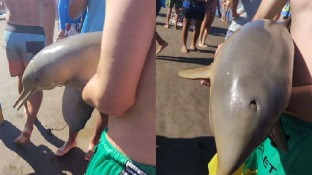 Un delfín de la especie franciscana murió en Mar del Tuyú después de ser sacado del agua por un turista que buscaba tomarse fotos. Según testigos, el animal fue levantado mientras flotaba cerca de la orilla y, en cuestión de minutos, una multitud lo rodeó, curiosa por verlo y capturar el momento. El delfín falleció poco después en brazos del joven que lo retiró del agua.