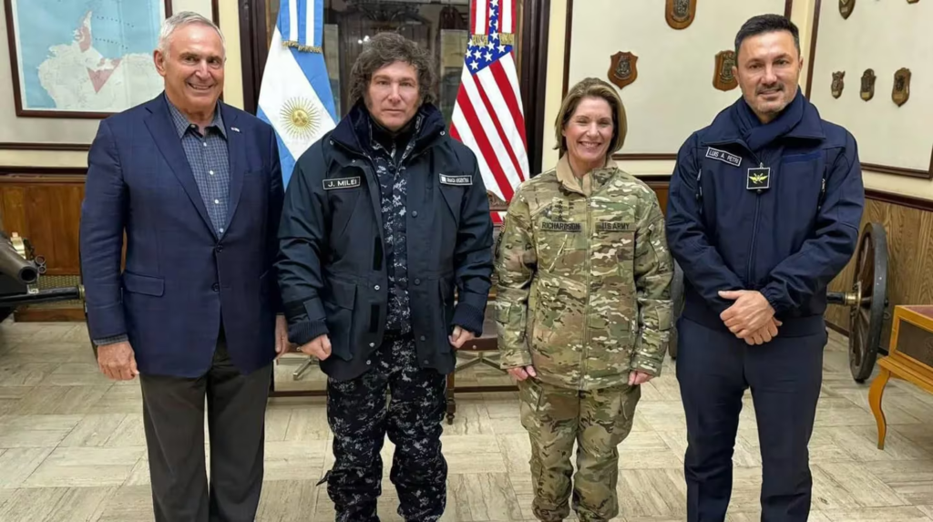 “No queríamos dejar de aprovechar la ocasión para darle bienvenida a la Argentina a la general Richardson, Comandante del Comando Sur de los Estados Unidos, y expresar nuestro agradecimiento por su visita y por el apoyo que el gobierno de los Estados Unidos ha demostrado a este nuevo Gobierno”, sostuvo el Presidente Milei durante una declaración de prensa que ofreció al arribar a Ushuaia.