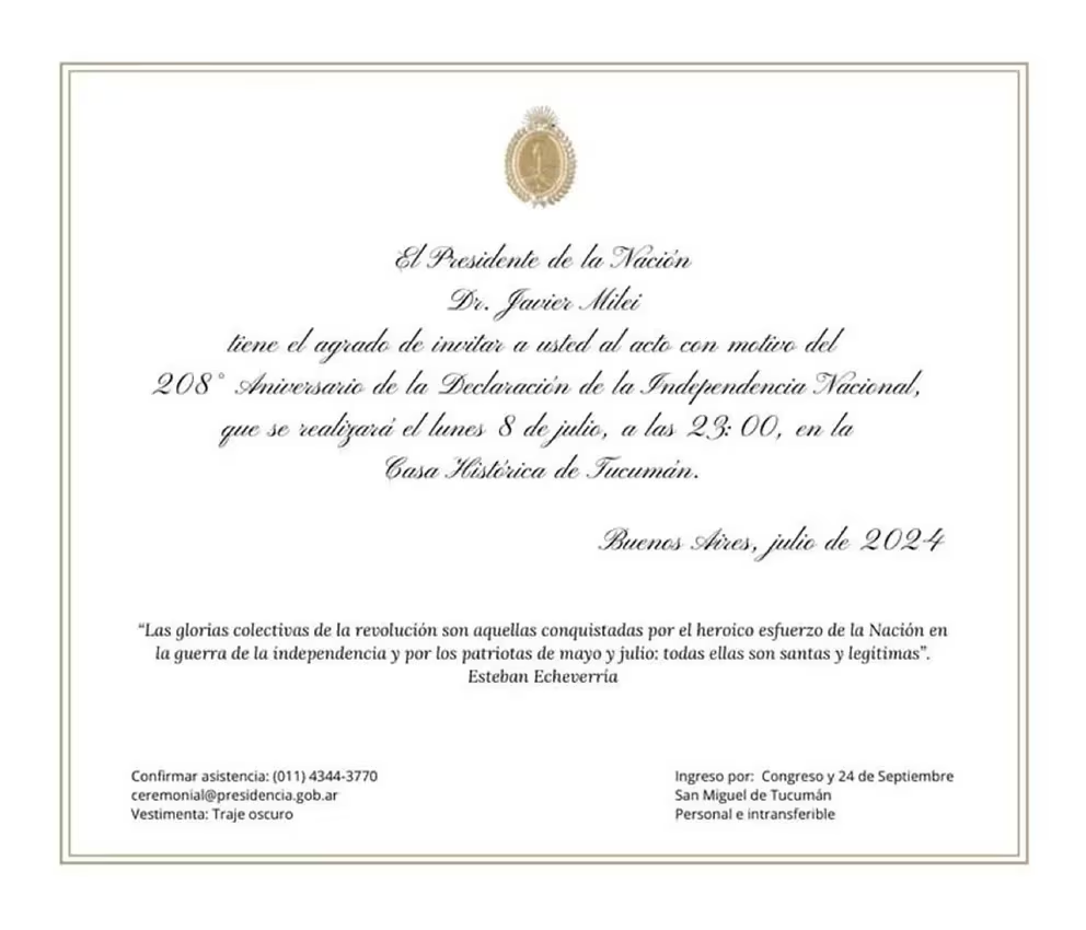 Llegada la medianoche, en los primeros minutos del del 9 de Julio, el presidente Milei convocará formalmente a todos los jefes provinciales a suscribir el texto que establece los lineamientos. El contenido es un reflejo del pensamiento del líder libertario. En efecto, la inviolabilidad de la propiedad privada; el equilibrio fiscal innegociable y la reducción del gasto público a niveles históricos, en torno al 25% del Producto Bruto Interno, aparecen como conceptos que tienen el sello de la administración Milei.