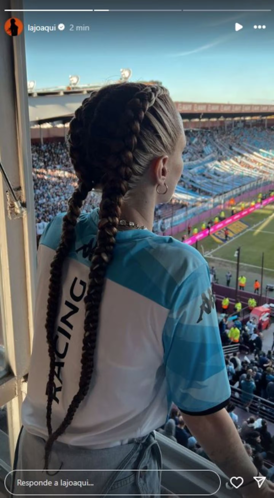 Joaquinha Lerena De La Riva, mejor conocida como La Joaqui, festejó la Copa Sudamericana de Racing posteando en sus historias de Instagram una foto vieja viendo a su equipo en la cancha de Lanús.