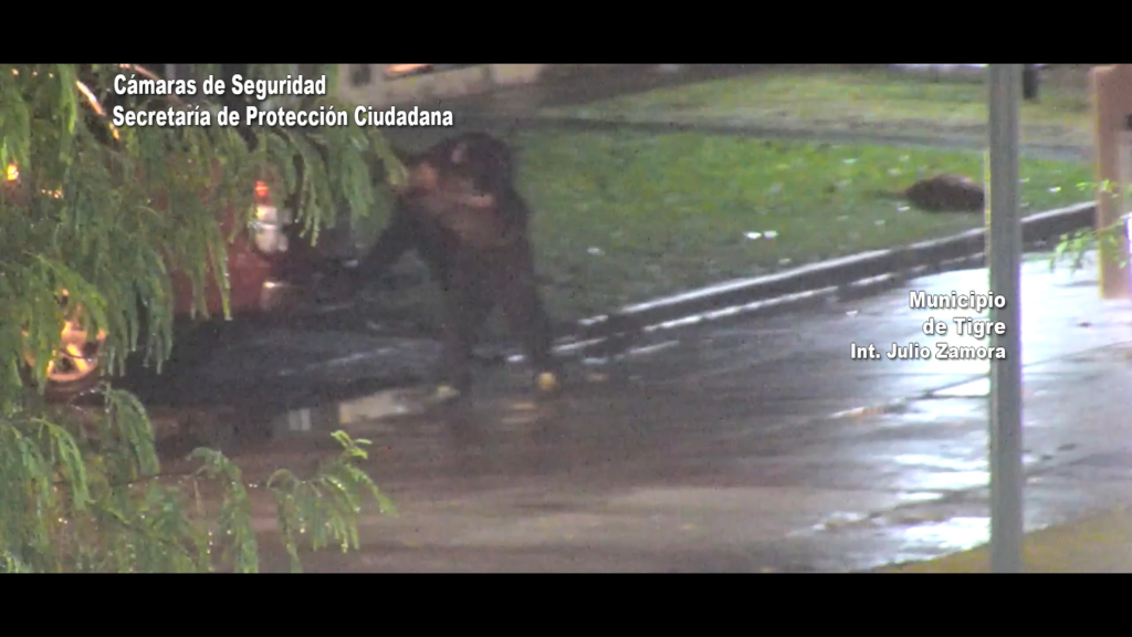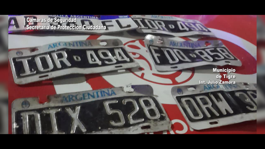 Todo comenzó cuando operadores del centro de monitoreo visualizaron a los sospechosos en las inmediaciones de las calles Chile y Belgrano. En las imágenes se puede ver cómo sustraen las placas de los automóviles.