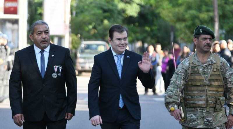 A su arribo el gobernador realizó la revista de tropas y saludó a la Agrupación 2 de Abril para dar comienzo al acto central, donde el presidente del Centro de Ex Combatientes de Malvinas, David Díaz, recordó a los héroes que ofrendaron sus vidas en defensa de la patria y destacó la reivindicación social conseguida en los últimos años después de un tiempo en el que permanecieron en el olvido.