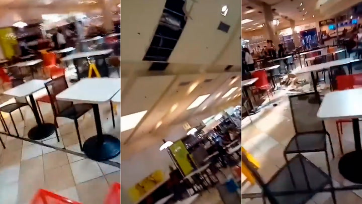 Una parte del techo del shopping Plaza Oeste, situado en el partido bonaerense de Morón, se
