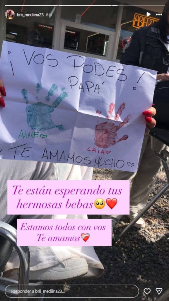 La joven compartió el tierno dibujo que Laia y Aiméle hicieron a su papá y escribió: “Te están esperando tus hermosas bebas”. “Estamos todos con vos. Te amamos”, cerró.