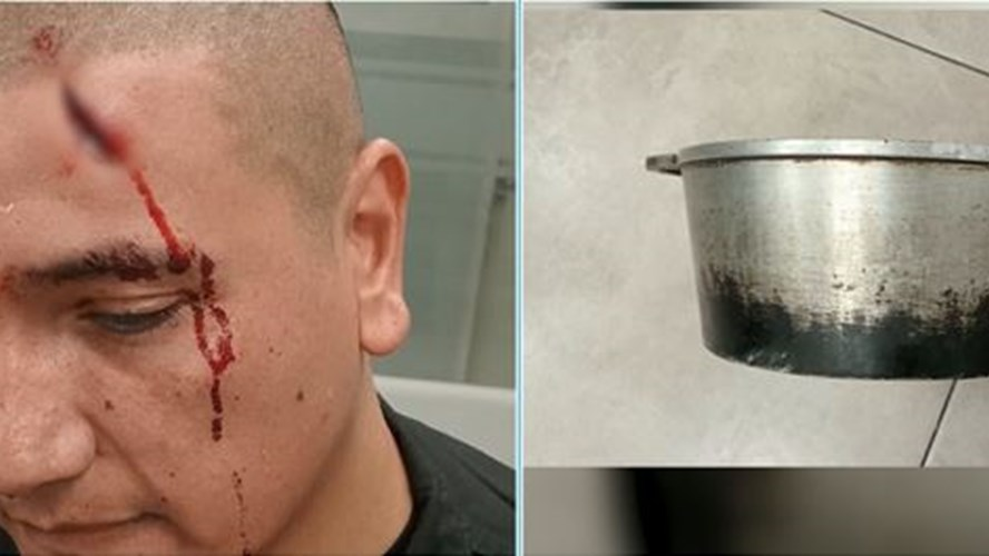 Pero desde los balcones del complejo habitacional repelieron a la policía: le arrojaron una olla de 3 kilos.